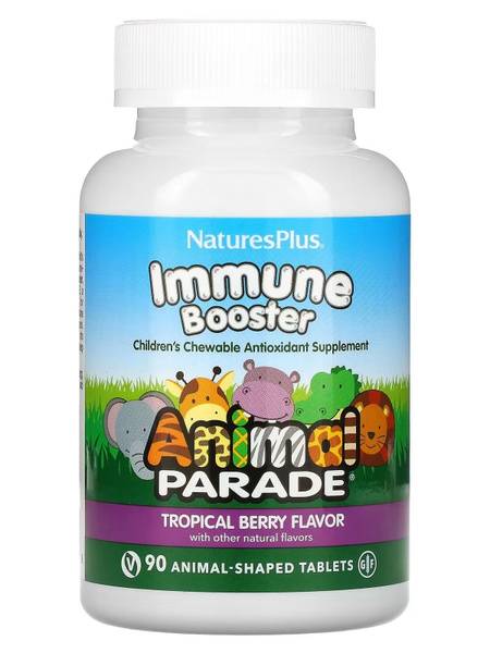 Support your child's immune system with NaturesPlus Animal Parade Immune Booster chewables. These delicious, tropically-flavored gummies deliver essential vitamins A, C, and E, plus immune-supporting zinc. Kids love the fun animal shapes! A unique blend of whole-food concentrates, including green tea and olive leaf, provides additional immune support, while added probiotics help maintain digestive balance for optimal nutrient absorption. Gluten-free, allergen-free, and vegetarian. Give your child the nutritional foundation for vibrant health.