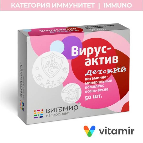 Virusaktiv VITAMIR is a comprehensive children's vitamin and mineral complex designed to support a strong immune system throughout the fall and spring seasons. This formula contains a blend of essential vitamins and minerals, including Vitamin A, C, E, B6, Folic Acid, Zinc, and Iron, to help replenish daily nutritional needs and bolster your child's natural defenses. Antioxidants like Vitamins C and E combat free radicals, while vitamins A, B6, and Folic Acid support immune cell production and function. Zinc contributes to the activation of the immune system, and Iron supports red and white blood cell production. Give your child the nutritional support they need to stay healthy and strong with Virusaktiv VITAMIR.