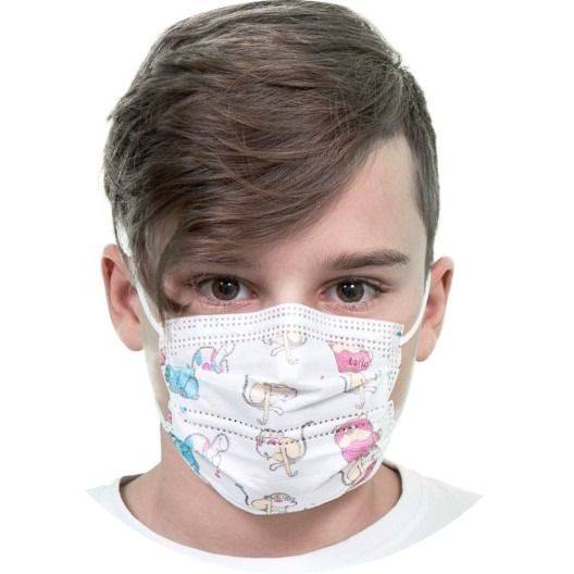 kids face masks, children's face masks, disposable face masks, 3 ply face masks, hypoallergenic face masks, child face mask, kids mask, protective face mask, FFP1 equivalent, bacterial filtration, virus protection, school face masks, Spunbond-Meltblown-Spunbond, KIT Classic Elite, 50 pack face masks, comfortable kids mask, animal print face mask, children's safety