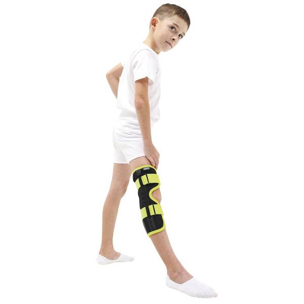The SKN 401C Knee Support Brace offers superior support and immobilization for children's knees. Designed in a 4XS size, this black brace features a unique, anatomically shaped design with four removable metal stays for customizable support and compression. Two of these stays are malleable for precise shaping, while the other two are elastic for a comfortable fit. This children's knee brace is perfect for providing support after knee surgery or injury.