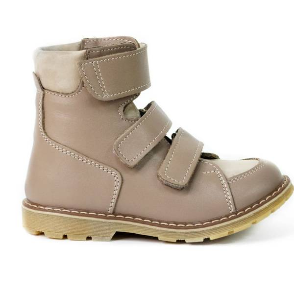 Ortho Kuban-Yug M-535B orthopedic boots offer practical comfort for children during cooler months. Crafted from genuine leather for durability, softness, and style, these boots feature a warm, breathable fleece lining to maintain a comfortable foot climate. The versatile beige color suits both boys and girls. Three Velcro straps ensure a secure and easy fit, perfect for active children. Ideal for everyday wear and outdoor activities in cool weather, the M-535B is designed to address various foot conditions, including unfixed equinovarus or valgus deformity, planovalgus and planus varus deformity, dropped foot, ankle instability, and leg length discrepancies up to 2cm, as well as fixed equinus deformity up to 2cm in height. The anatomical design promotes proper weight distribution, improving posture and overall musculoskeletal health. Available in sizes 25-31 (preschool and early elementary school ages), with custom-fitting options available for unique foot needs and alternative color choices.
