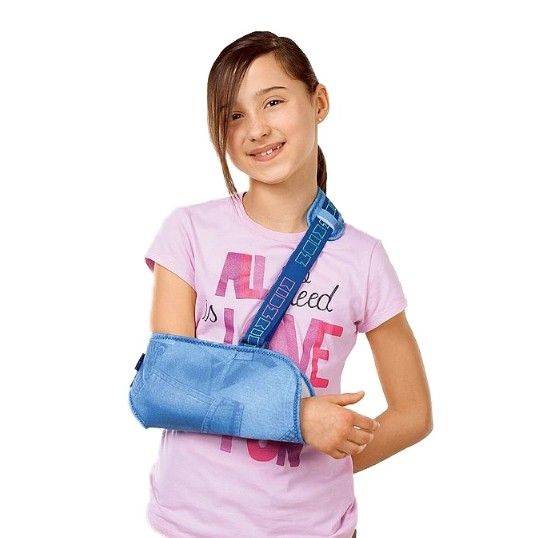 Description: The medi Arm Sling pediatric shoulder support bandage gently limits shoulder joint movement, providing comfortable support for the upper extremity. This reduces stress on the shoulder joint, creating optimal conditions for faster recovery. Featuring an attractive denim-style design, the adjustable hook-and-loop closures allow for a customized fit around the forearm. Its practical design ensures easy application and removal. The post-operative wound area remains accessible for dressing changes. The forearm height is adjustable via the shoulder strap. The soft, comfortable fabric enhances wearability, and a soft neck strap prevents chafing and skin irritation. Made from polyester, elastane, polyamide, polyethylene foam, and nylon. Important: Do not use if wounds are not covered with sterile dressings. Use only as directed by your physician.