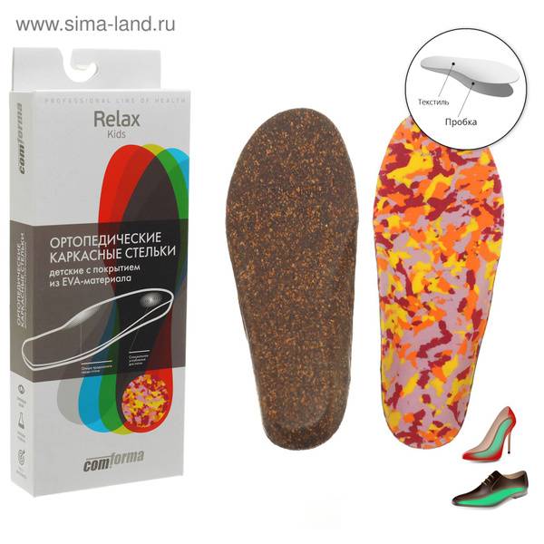 Description: Comforma kids' insoles are crafted from high-quality EVA and cork materials for superior comfort and support. Their unique structured design provides optimal weight distribution, preventing discomfort during prolonged walking and helping to correct foot problems. The supportive framework can be customized using an abrasive wheel for a truly personalized fit. These insoles are ideal for children experiencing discomfort, flat feet, or pes valgus (flat feet with inward-turning ankles) and X-shaped legs. They offer significant benefits, including arch support, pressure redistribution, prevention of musculoskeletal problems, and reduced strain on the spine and lower joints. Simply wipe clean with a damp cloth. Allow 3-7 days for adjustment. Sizes correspond to insole length in cm.