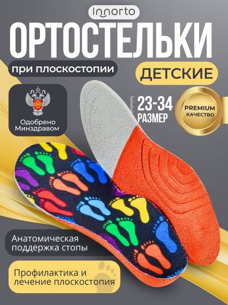 Clinically tested medical device (Registration certificate No. РЗН 2024/22124). INNORTO 52150 children's insoles are designed for the prevention and treatment of flat feet in children. These valgus insoles provide ideal support for children with unstable heels, preventing X-shaped leg curvature. They alleviate foot and back pain and fatigue. Suitable as a child's first orthotic, they offer reliable support and comfort. A flexible plastic frame provides cushioning, maintains proper foot position, and mimics anatomical curves for long-lasting durability. The breathable top layer wicks away moisture, preventing chafing and ensuring all-day comfort. High sides secure the heel, crucial for toddlers taking their first steps. The pronounced relief reduces metatarsal stress, supports the arch, and firmly secures the heel. These insoles correctly distribute weight, preventing flat feet and other deformities. Available in sizes 23-24, 25-27, 28-30, and 31-34, ensuring a perfect fit. Their neutral color complements any shoe style. Packaged in sturdy, branded packaging to maintain shape and properties during transport and storage. These durable and comfortable insoles are an essential accessory for children's footwear, providing support for proper foot development and protection during active play and sports. They are specifically designed to fit the shape of a child's foot, evenly distributing weight. Orthopaedic design helps correct and prevent foot problems, offering both therapeutic and preventative benefits. Breathable for warm weather, they keep feet cool and dry. The supportive, cushioning design protects against impact and pressure, especially beneficial for active children. Suitable for everyday use and specifically designed for sneakers, offering added comfort and protection during active play and training. Helps reduce heel spur pain by supporting the arch and distributing weight evenly. Available in demi-season options for transitional weather. Consult an orthopedist to determine the best fit for your child's needs. These insoles provide crucial support and correction for growing feet, addressing valgus deformities and flat feet. They are ideal for daily wear, ensuring comfort and support for your child's active lifestyle.