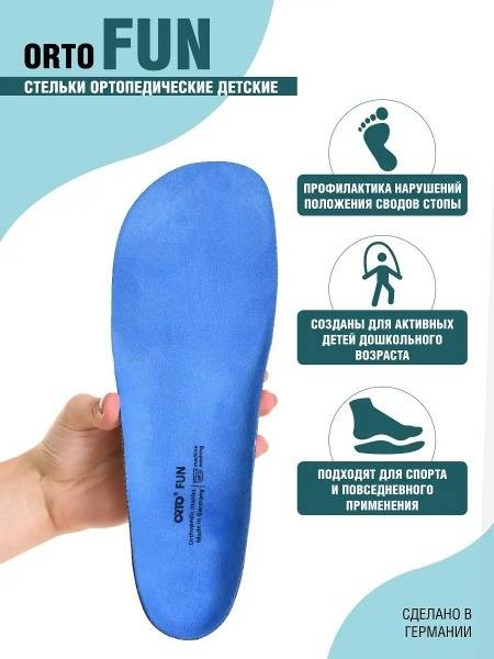 SEO Keywords: children's orthotic insoles, kids orthotics, pediatric orthotics, flat feet prevention, valgus, varus, knock knees, bowlegs, insole size 25, insole size 26, Orto Fun, orthopaedic insoles for children, foot support for kids, healthy foot development, child posture correction, blue insoles.