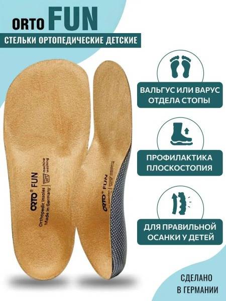 Orto Fun children's orthotic insoles, expertly crafted by orthopedists, provide gentle yet effective support for growing feet. These insoles feature a unique design incorporating a thin, supportive plastic frame, high side borders (covering 2/3 of the insole), and a deep, contoured heel cup to cradle the heel and promote proper alignment. The slim profile (maximum 2mm thickness) ensures they fit comfortably within existing children's shoes without reducing interior space.