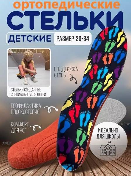 Description: These children's orthopedic insoles effectively prevent the development of both transverse and longitudinal flat feet. The firm, supportive structure ensures proper foot arch alignment during walking and running, promoting healthy foot development. They cradle the foot in its anatomically correct position, reducing impact stress on joints. The flexible frame absorbs shock with every step, while high sides provide stability and prevent heel slippage. Lightweight and comfortable, they won't weigh down little feet. A breathable textile covering wicks away moisture, keeping feet dry and comfortable. The front of the insole can be trimmed to size without compromising its orthopedic support. Suitable for children and adolescents with flat feet or valgus deformity of varying degrees, these insoles offer a cost-effective alternative to expensive orthopedic shoes. Perfect for all seasons – wear them in boots, shoes, sneakers, or sandals. Easy to clean with warm water and mild detergent. Size selection is based on insole length (cm). Manufacturer's sizing is provided in the product details.