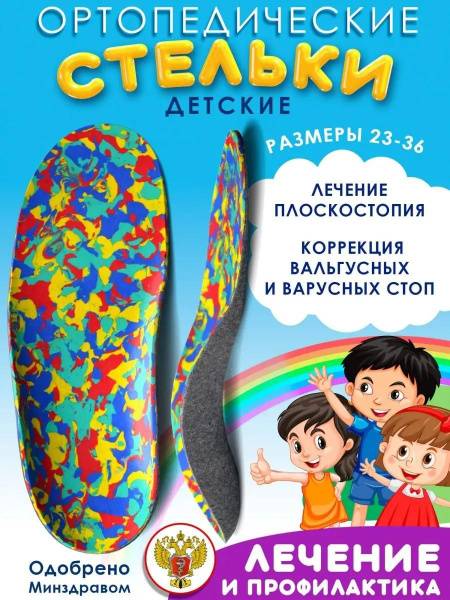 MEDICAL DEVICE. DEVELOPED BY DOCTORS, REGISTERED WITH THE MINISTRY OF HEALTH. These children's orthotic insoles with high sides (ST-181) are developed in collaboration with the Federal State Institution "St. Petersburg Research Center for Pediatric Endocrinology and Rheumatology named after Albrecht, FMBA of Russia". Made with a soft, hypoallergenic, moisture-wicking, and breathable material, these insoles provide superior comfort. They offer immediate correction of unfixed foot deformities, support longitudinal arches, and secure the heel in its correct anatomical position. Indications: Valgus and plano-valgus unfixed foot deformities, including those combined with valgus or varus deformity of the rear and midfoot; rehabilitation after foot injuries and surgeries.
