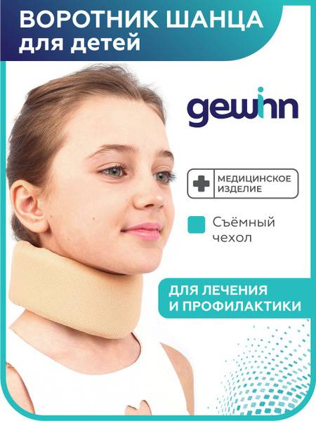 The Gewinn Children's Schanz Collar with Removable Cover offers gentle yet effective support and stabilization for children's necks. Designed with a proper anatomical shape and a convenient chin cutout, this pediatric neck brace ensures optimal comfort during wear. The collar's base is constructed from resilient, elastic polyurethane foam, while the removable cover is made from a hypoallergenic material, ensuring gentle skin contact even during extended use. Secure Velcro closure allows for easy adjustment and a customized fit.