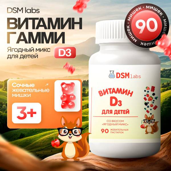 Kids' Vitamin D3 Gummies - Berry Mix, 90 Gummies, Dietary Supplement