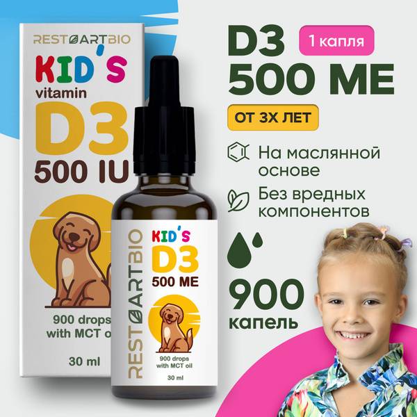 Vitamin D3, Vitamin D, Children's Vitamin D, Liquid Vitamin D, MCT Oil, Vitamin D3 500 IU, Child Health, Immune Support, Bone Health, Cognitive Function, RestartBio, Biolit, Healthy Gut, No Additives, Gluten-Free, Lactose-Free, GMO-Free, Pregnant Women, Childhood Obesity, Vitamin D Deficiency, Scoliosis, Celiac Disease, Cystic Fibrosis
