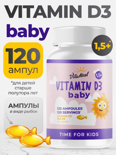 Each VitaMeal Vitamin D3 ampoule delivers 5 mcg of vitamin D3, easily added to food, drinks, or administered directly. Our high-quality vitamin D3 for children helps ensure optimal growth, strong bones, and a robust immune system for kids aged 18 months and older. Choose VitaMeal for your child's complete well-being. (120 ampoules per bottle).