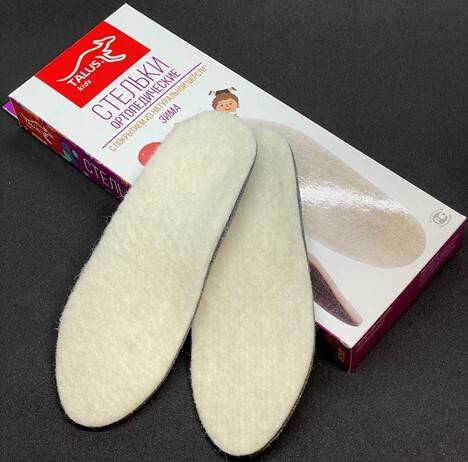children's orthopedic insoles, TALUS insoles, winter insoles, wool insoles, flat feet, flat-valgus feet, kids insoles, orthopedic support, foot health, children's foot care, size 34/35, 22cm insoles, natural wool, comfortable insoles, CARBOSAN, Roszdravnadzor, medical device, child's foot support, preventative foot care, corrective insoles, foot pain relief, children's shoe inserts.