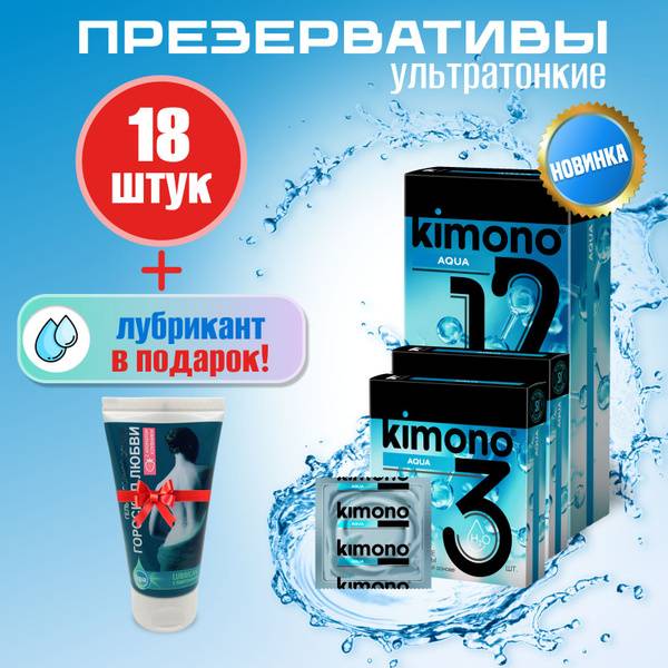 Kimono condoms, aqua condoms, ultra-thin condoms, condoms with lubricant, water-based lubricant, 18 condoms, condom pack, safe sex, reliable protection, sensitive skin, allergy-friendly condoms, comfortable condoms, pleasure, intimacy, free lubricant, sex toys, couples, adult products.