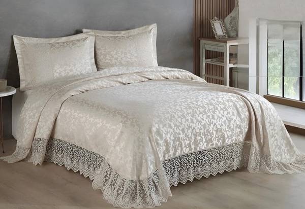 Indulge in the exquisite elegance of this LEVANTE Jacquard bedspread, a masterpiece from BIRHOME's Turkish collection. This stunning 240x260cm bedspread, complete with two matching 50x70cm pillowcases, features a captivating classic pattern that effortlessly elevates any bedroom's ambiance. Crafted from durable, high-quality fabric, it's available in a range of sophisticated colors to complement any decor.