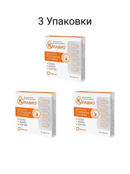 Clavio is a comprehensive vitamin and mineral supplement designed to support healthy skin, hair, and nails. This 3-pack contains 90 tablets (30 tablets per pack), each providing a potent blend of essential vitamins, minerals, and amino acids to help restore vital nutrient balance. Clavio's carefully selected formula includes: