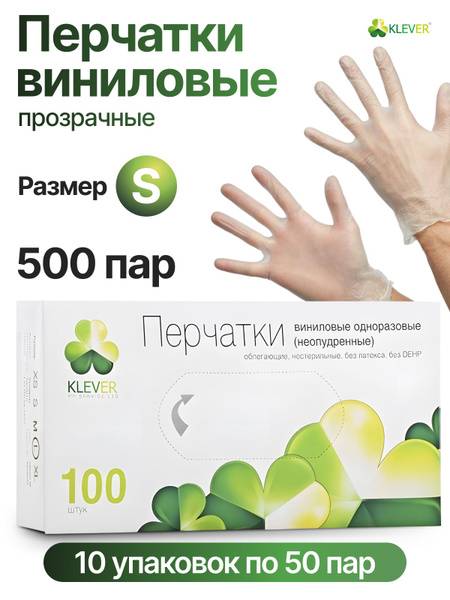 Experience superior protection and comfort with KLEVER vinyl gloves. These disposable, powder-free gloves offer a reliable barrier against a wide range of contaminants. Perfect for medical, food service, and industrial applications, KLEVER gloves provide excellent dexterity and comfort for extended use. These high-quality, latex-free and DEHP-free vinyl (PVC) gloves are a smart choice for various needs. Their medical-grade quality (AQL 1.5) and textured surface ensure a secure grip, while the polyurethane coating makes them easy to don. At size small, these 10 boxes of 100 gloves (1000 gloves total) offer a cost-effective bulk solution.