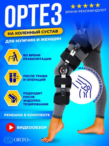 The ORTO+ hinged knee brace offers superior support and protection for your knee joint. This versatile design is suitable for everyone: teenage boys and girls, young adults, men and women, and seniors. Available in black and light gray for both men and women. Includes an additional stabilizing strap. This rehabilitative knee support fits both the right and left leg.