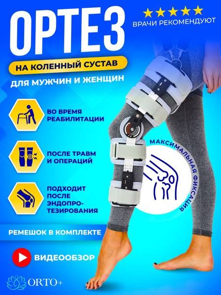 The ORTO+ hinged knee brace provides superior support and protection for your knee joint. This versatile model is suitable for everyone: boys and girls, teens, young adults, men and women, and seniors. Available in black and light gray for both men and women, it includes an additional strap for customized support. This rehabilitation knee support fits both the right and left leg. Crafted from high-quality neoprene, plastic, and metal, the brace features a soft, elastic, and comfortable fabric that won't chafe. Removable, moisture-wicking foam pads further enhance comfort. Durable and long-lasting, this brace maintains its functionality and appeal over extended use. Its breathable design allows for year-round wear, regardless of weather conditions. Wide straps extend along the entire length of the leg, including the thighs and ankles, and easily adjust for a perfect fit, even over clothing. Strong hook-and-loop closures ensure quick and secure application. The height-adjustable, high-strength metal supports accommodate users of all heights. A unique mechanism allows for precise adjustment of the knee flexion angle, providing customized support and stabilization in any position. This exceptionally strong neoprene knee brace with plastic and metal components is ideal for post-operative recovery, rehabilitation after fractures or sports injuries, and managing conditions like Osgood-Schlatter disease, osteoarthritis, and arthritis. It offers crucial joint correction, reducing discomfort and pain. Perfect for athletes and individuals with high physical activity levels, it's also suitable for everyday wear.
