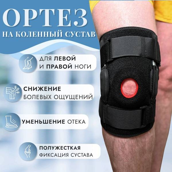 This high-quality orthopedic knee brace provides superior support and stability for injury recovery, pain relief, and enhanced performance. Featuring two removable metal hinges, it allows for controlled range of motion while preventing hyperextension and offering crucial lateral stabilization. The open patella design reduces pressure on the kneecap, while a silicone patellar ring ensures proper alignment and shock absorption. Made from breathable, durable material with adjustable straps for a secure fit, this knee support is ideal for post-operative rehabilitation, treating various knee conditions (including osteoarthritis, meniscus tears, and ligament instability), and preventing re-injury during sports or daily activities. Provides effective relief from pain and inflammation associated with degenerative joint diseases and instability. Recommended for post-surgical recovery, functional impairments, and preventing injuries. Hand wash at 30°C (remove hinges first); air dry away from heat. Consult your physician for personalized recommendations.