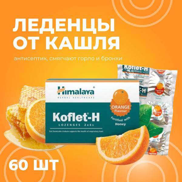 Description: Koflet-H Orange cough lozenges provide fast relief from coughs and sore throats. These delicious orange-flavored lozenges intensely soothe inflamed and irritated throat tissues, relieving pain and combating coughs of various origins. They are particularly effective for dry coughs, reducing irritation in the bronchi and mucous membranes, lessening pain, and reducing inflammation in the upper respiratory tract, specifically the pharynx and larynx. The lozenges offer antiseptic, anti-inflammatory, and healing effects for conditions like tonsillitis, laryngitis, and pharyngitis, and provide relief from sore throats in the early stages of influenza and acute respiratory infections (ARIs). The antitussive effect helps suppress irritating coughs associated with chronic obstructive pulmonary disease (COPD) or smoker's cough.