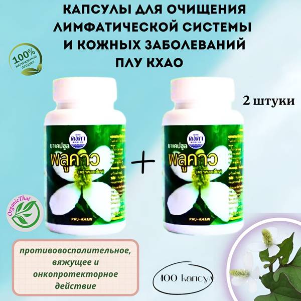 Title: Kongka Herb Plu Khao Capsules: Lymphatic Cleansing & Skin Disease Treatment (100 Capsules, 2 Bottles)