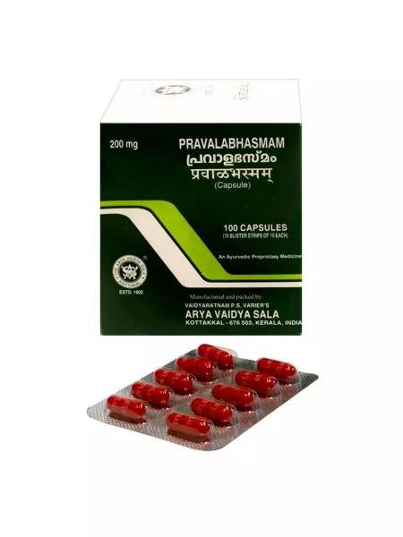 Kottakkal Arya Vaidya Sala Pravala Bhasmam (100 Capsules) is a traditional Ayurvedic supplement made from carefully processed coral. This natural formula helps balance the three doshas (Vata, Pitta, and Kapha) and offers a wide range of health benefits.