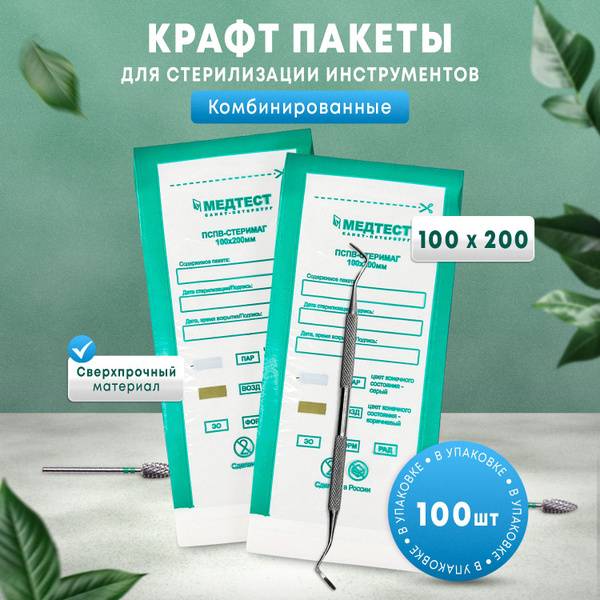 High-quality kraft paper pouches, perfect for steam, dry heat, and air sterilization of manicure instruments. Each pouch features a clear window for easy viewing and is individually sealed for hygiene. This 100-pack set of 100x200mm pouches is ideal for professional manicurists and salons. MEDTEST brand ensures reliability and quality. These disposable pouches offer convenient and effective sterilization, promoting a safe and hygienic work environment. Suitable for autoclaves, dry heat sterilizers, and other sterilization methods. Buy now and experience the difference!