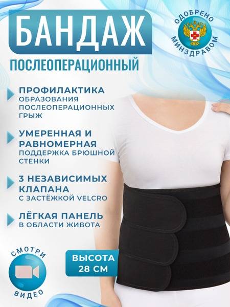 This abdominal support bandage provides secure fixation of the surgical incision and supports the anterior, lateral, and lumbar regions. It can be used for lower chest support in women and chest support in men. The height of the bandage should be selected based on the length of the incision and the patient's height.