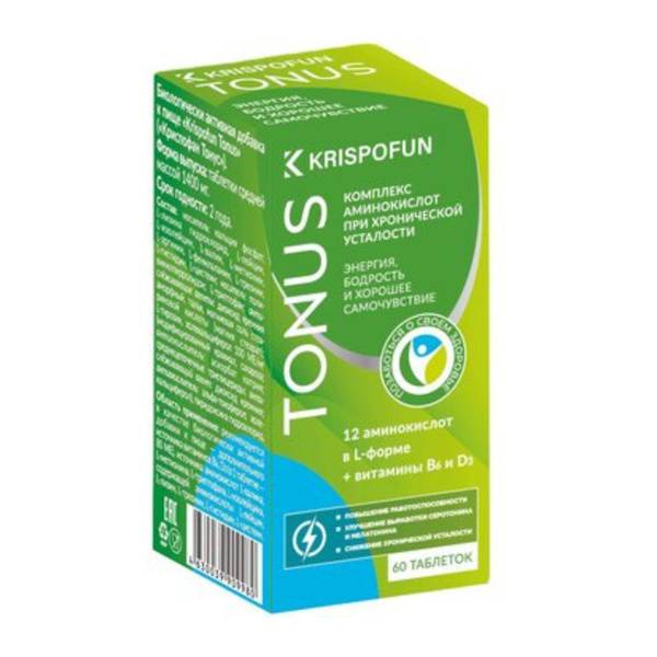 Combat fatigue and boost your energy levels with Krispofun Tonus, a comprehensive amino acid complex formulated to combat stress, improve focus, and enhance overall well-being. Feeling constantly tired? Krispofun Tonus provides sustained energy and supports your body's natural ability to cope with the demands of a busy lifestyle.