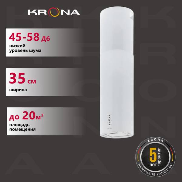 The KRONA TINA ISOLA 350 WHITE 3P is a stylish cylindrical island range hood designed to elevate your kitchen. Its sleek, rounded design and minimalist aesthetic seamlessly integrate into modern kitchens. Boasting a powerful 1000 m³/h extraction rate, this hood efficiently removes cooking odors. Intuitive electronic push-button controls with backlight ensure easy operation, while a convenient timer allows for automatic shutoff. Bright, energy-saving LED lights provide ample illumination, enhancing both functionality and ambiance. Built to last, this range hood offers a 7-year lifespan.