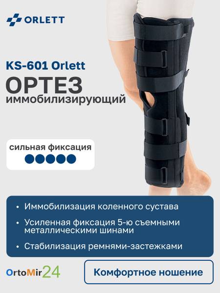 Target Keywords: knee immobilizer, knee brace, knee support, post-surgical knee brace, knee injury brace, knee instability brace, Orlett KS-601, knee immobilization, patellar injury brace, meniscus injury brace, adjustable knee brace, removable splints, Velcro straps, hypoallergenic knee brace, comfortable knee brace.