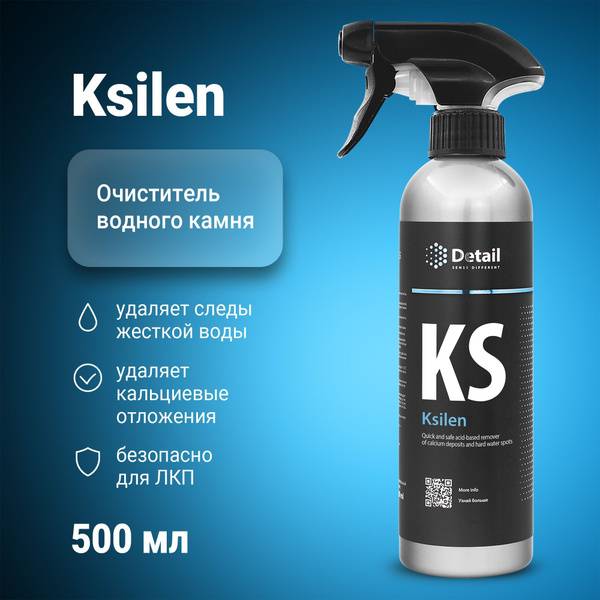 KS Ksilen Water Spot Remover is part of the comprehensive DETAIL car care line. We offer a complete range of exterior and interior cleaning products, protective coatings (ceramic and quartz), waxes, and essential detailing accessories like microfiber towels, applicators, and brushes. Choose DETAIL and experience the difference.