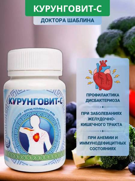 Kurungovit-S offers restorative support for dysbiosis, various gastrointestinal disorders, respiratory conditions, anemia, and immune deficiencies associated with viral, bacterial, and even oncological diseases. It's particularly recommended for athletes and individuals engaging in intense physical activity as part of a comprehensive recovery and preventative healthcare strategy. Each bottle contains 60 convenient tablets.