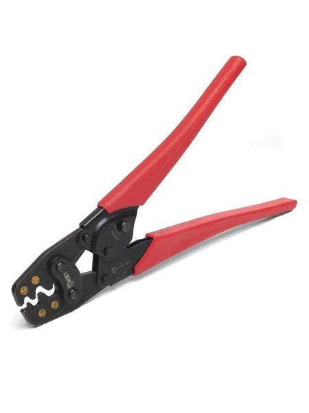 The KVT PK-16m (78866) crimping pliers offer superior performance for professional-grade wire termination. These 4-position wire crimping pliers crimp copper lugs from 2.5-16 sq mm, accommodating both single-stranded wire and multi-stranded wire. Featuring a hidden ratchet mechanism for enhanced crimping force and complete cycle assurance, the PK-16m ensures reliable, consistent connections every time. This ratchet crimping pliers provides superior cable crimping. A wedge crimping action delivers superior conductivity, and the emergency release screw provides added safety and convenience. Durable, black oxide finish and ergonomic handles provide comfort and longevity. Weight: 445g, Length: 275mm. Ideal for crimping lugs and ferrules of any standard. These professional crimping tools are perfect for any wire connectors job.