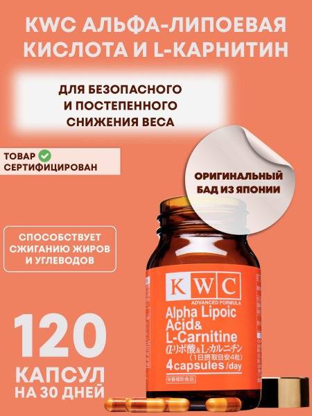 KWC (Japan) Alpha-Lipoic Acid & L-Carnitine: Effective Weight Loss & Anti-Aging Supplement (120 Capsules)
