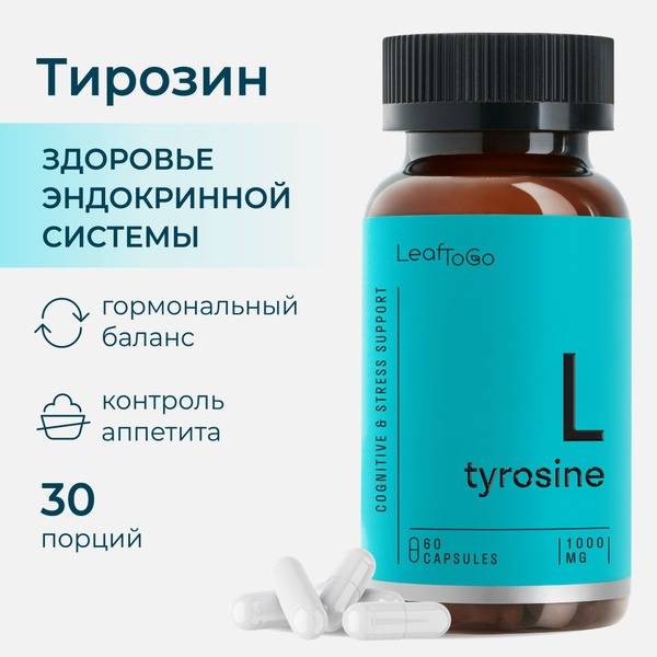 L-Tyrosine, 1000mg, 60 capsules, mood booster, focus enhancer, energy supplement, stress relief, fatigue reduction, cognitive function, thyroid support, weight management, appetite control, muscle growth, protein synthesis, amino acid, LEAFTOGO, supplement, healthy lifestyle.