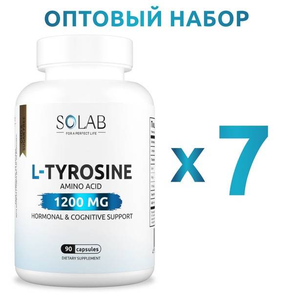L-Tyrosine, 1200mg, supplement, mood booster, stress relief, focus enhancer, cognitive enhancement, dopamine, thyroid support, energy booster, fatigue relief, memory improvement, concentration, mental clarity, natural supplement, high-potency, 90 capsules, 7 bottles, SOLAB (Brand Name)