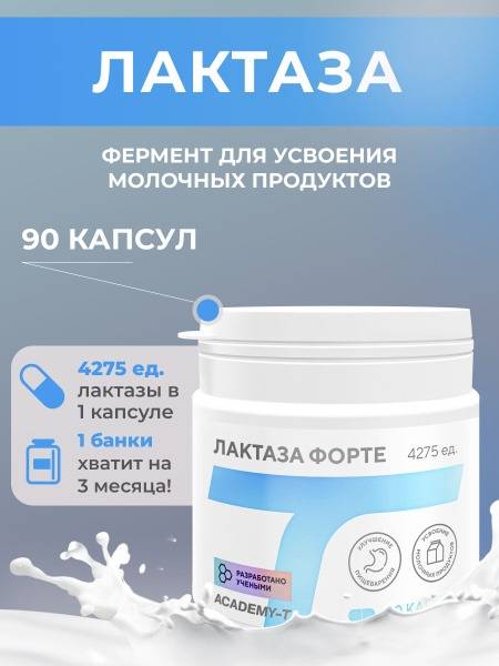 Keywords: Lactase Forte, Academy-T, lactose intolerance, lactase enzyme, dairy digestion, bloating, nausea, stomach cramps, dairy products, milk sugar, lactose supplement, digestive health, calcium, protein, phosphorus, dietary supplement, 90 capsules, 327mg, digestive enzyme.
