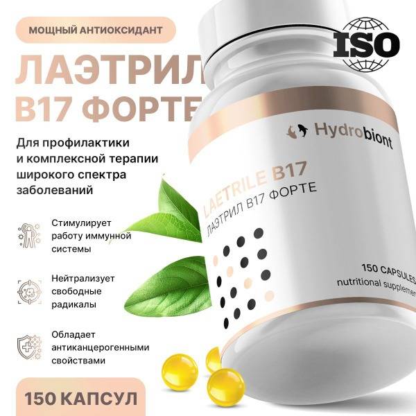 Hydrobiont Laetrile B17 Forte is a 150-capsule supplement designed for men and women seeking to support their overall health and well-being.
