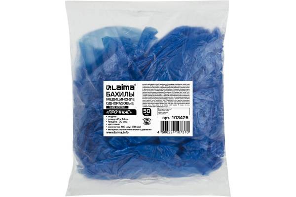 Description: Maintain cleanliness with these durable Laima shoe covers. This 100-pack (103425) is made from heavy-duty polyethylene (4.5g) for superior strength and protection. Features include a smooth, blue finish, and dimensions of 390mm x 150mm (39cm x 15cm) with a thickness of 36 microns. Ideal for commercial and residential use.