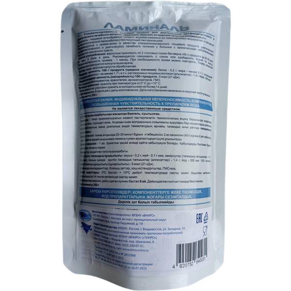 Laminyl is a specialized food product derived from brown seaweed (Laminaria japonica). This natural sea kelp biogel is technologically processed and pasteurized, offering a range of health benefits. It's recommended as a dietary supplement for various conditions, including those affecting the gastrointestinal tract, skin irritations, and mineral deficiencies.