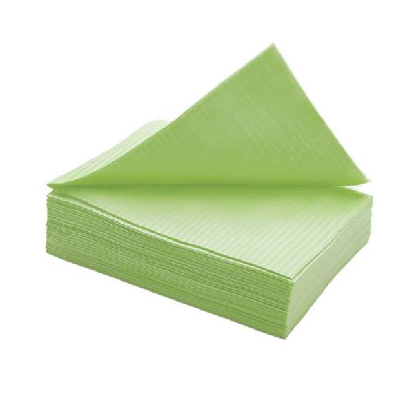 High-quality, laminated 33x45cm green paper towels (500 count) offer superior protection for patients and clients. Resistant to moisture and cosmetics, these durable towels are ideal for medical, beauty, and personal use. Made from premium paper and polyethylene film, meeting all necessary standards. These are the best laminated paper towels for medical use and perfect for disposable towels for nail salons.