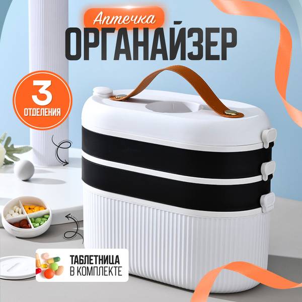 This large, multi-level home medicine organizer provides convenient and compact storage for all your medications and medical supplies. Its high functionality, ease of use, and spacious design make it ideal for any household. The sturdy, white plastic case features multiple compartments for pills and tablets. The upper section boasts several individual compartments for sorting medications, while larger compartments effectively maximize internal space. A secure locking lid prevents accidental opening during transport, and a convenient handle ensures easy portability. This multi-tiered container helps maintain order at home and is perfect for the car, providing easy access to first-aid supplies during travel. Ideal as a portable travel first-aid kit, keeping essentials readily accessible. Use it as a travel, children's, camping, or hiking medical kit. This versatile storage box also functions as a handy organizer for pet supplies, car essentials, crafting materials, jewelry, sewing supplies, kids' hygiene items, fishing tackle, and more. Includes a FREE pill organizer with daily compartments!