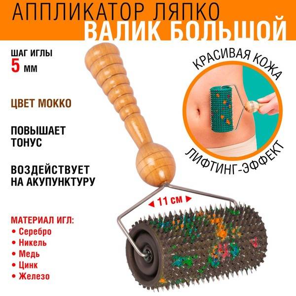 Description: The Lyapko roller applicator is a unique massage tool for effective self-care. Its innovative design combines metal and rubber needles, making it ideal for targeted body massage. This versatile device is perfect for rehabilitation and pain relief in various areas, including legs, back, neck, and lower back. The needle mechanism stimulates blood circulation and reduces muscle tension, promoting a feeling of lightness around joints. The applicator's acupuncture-like effect provides soothing relief and enhances well-being. Made with safe, high-quality materials including copper and silver needles, the roller ensures gentle yet effective skin stimulation. This is the perfect tool for post-workout recovery or unwinding after a long day, activating key bio-active points on the feet and throughout the body to boost immunity and reduce stress. Its ergonomic 6.1cm diameter and 11cm width provide comfortable and effective treatment. The 5mm needle spacing offers a balanced level of stimulation. Experience the therapeutic benefits of the Lyapko method with this superior roller applicator.