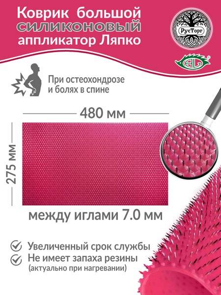 Experience the enhanced therapeutic benefits of the large Lyapko applicator mat. This high-quality silicone mat boasts a generous 275 x 480 mm surface area, providing extensive coverage for effective pain relief and improved well-being. With a 7.0 mm needle spacing and a total of 2710 needles, this mat delivers a powerful yet comfortable stimulation.