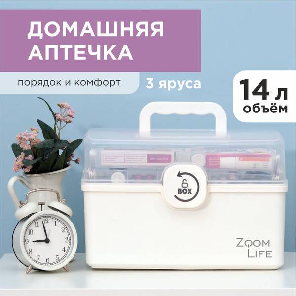 medicine cabinet organizer, medicine storage, pill organizer, first aid kit, home storage, plastic container, 14L storage, large storage container, child-resistant, transparent container, organized storage, home organization, gift for mom, mother's day gift, birthday gift, ZoomLife