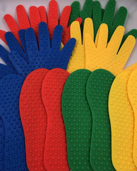 These high-quality PVC sensory massage mats feature a medium-firm spiked surface, perfect for developing tactile awareness and spatial orientation skills in children. Non-slip, durable, and easy to clean and sanitize, they're ideal for active play, physiotherapy, and sensory integration therapy. Approved by child psychologists, defectologists, play therapists, and sensory specialists, these hand and foot massagers provide gentle stimulation, improving circulation and benefiting nerve endings. The vibrant colors (blue, green, red, and yellow) make them engaging for children. Each set includes 8 pairs (16 pieces): 4 pairs of hand mats (20x18 cm) and 4 pairs of foot mats (23x10 cm). Durable enough to withstand rolling, twisting, and throwing, these versatile mats are a fantastic addition to any home or classroom.