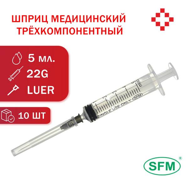 High-quality, latex-free 3-part 5ml syringes with a 0.7x40mm, 22G needle. Packaged 10 per box for convenient dispensing. Ideal for medical professionals. [Brand Name, if applicable]