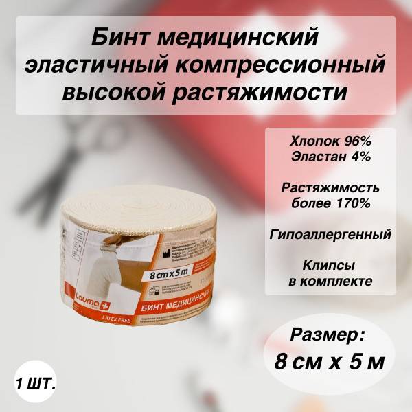 elastic bandage, compression bandage, medical bandage, Lauma, high-stretch bandage, varicose veins, sports injury, post-operative care, swelling, pain relief, circulation, injury prevention, muscle support, ligament support, 5m bandage, 8cm bandage, compression therapy, venous disease, thromboembolism, hematoma, joint pain, sports medicine, physical therapy.